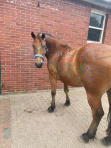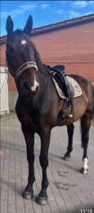 Unser Riese Solero kam mit sechs Jahren als schlacksiges und unausbalaciertes Pferd zu uns, war aber von Anfang an unglaublich lernwillig und gutmütig. So schaffte er es in nur 2 Monaten das Voltigieren zu lernen und auch schon direkt seinen ersten Turnierstart zu absolvieren. Er liebt die Aufmerksamkeit von seinen Volti- und Reitmädels und ist immer auf der Suche nach etwas Essbarem. Zum Glück erlaubt seine Figur das aber auch.